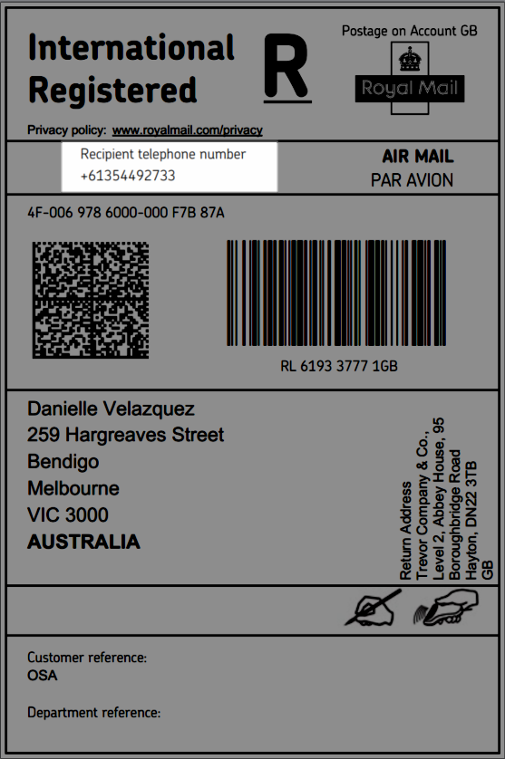 by Syed Haroon ShahThe Royal Mail international label templates have been updated to include the recipient contact number to conform with the overseas delivery partners and customs authorities.